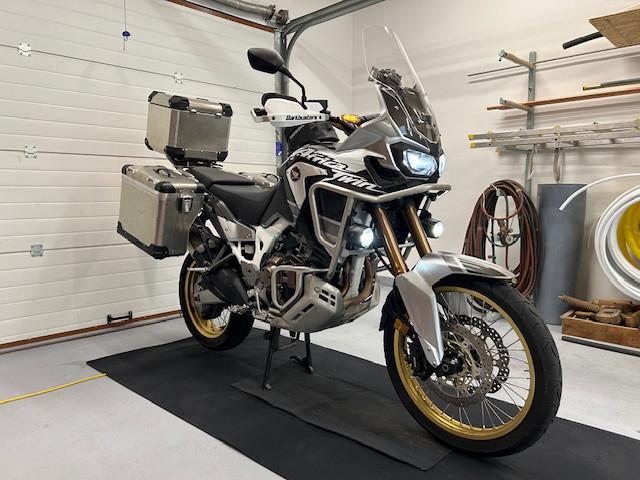 Prodám Honda CRF 1000L ADV DCT r.v.2019 (zakoupeno a servis Honda Velsbike Jinačovice 4/2020), jsem jediný majitel. K motorce jsou originál boční kufry Honda(Touratech), horní kufr Bumot , stupačky Touratech, nová kompletní řetězovka zatím 0km, olej 5000km, pneu Dunlop Trailmax Meridian 5000 km (najedou cca 14000), origo padáky a přídavná světla, servisní knížka, Barkbusters... Odpočet DPH