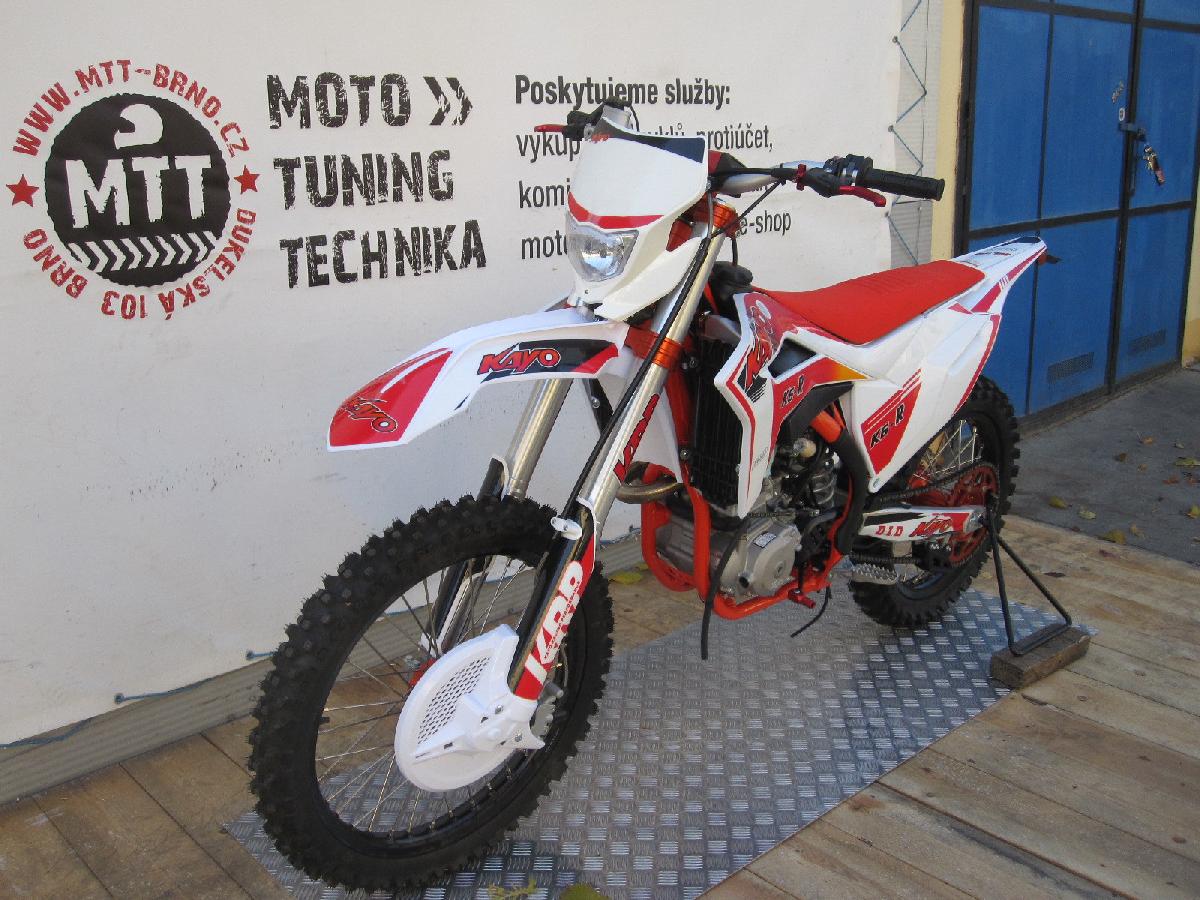 Hobby motocykl, kterým nepohrdnou ani profesionálové, to je KAYO K6-R. Čtyřtakt, který přichází na náš trh, aby vás posunul dál. MOTOR: Typ motoru: 4-taktní / jednoválec Převodovka: manuální, 6-rychlostní Výkon: 27 kW / 10500 ot./min Kroutící moment: 36 Nm / 7500 ot./min Palivový systém: Závodní karburátor NIBBI Startování: Elektrické a mechanické PODVOZEK: Provedení rámu: Vysoce pevný ocelový tru